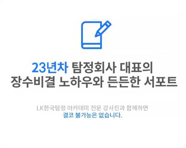 대한민국 탐정 민간조사 업계 22년차 현직 대표 탐정전문가의 체계적이고 전문적인 실무핵심교육!!
